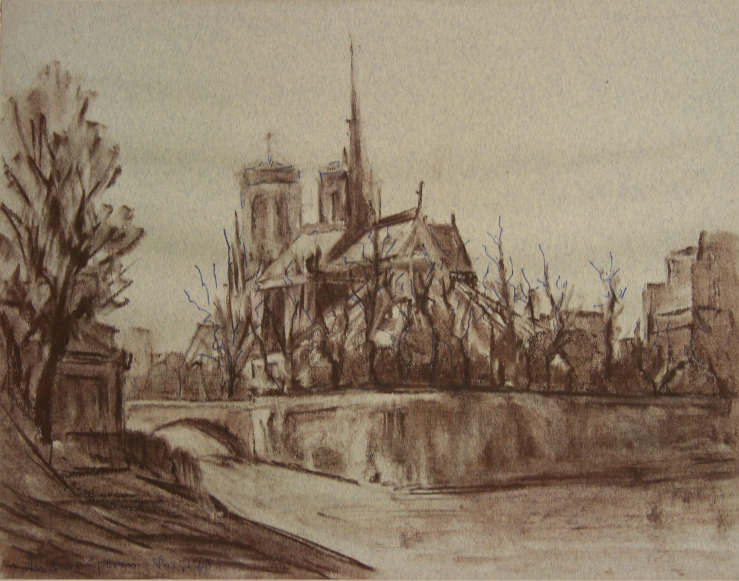 Map V k8, Nederland, Alpen, Parijs, 22 geschilderde tekeningen in kleur en penseeltekeningen, in passe-partout.