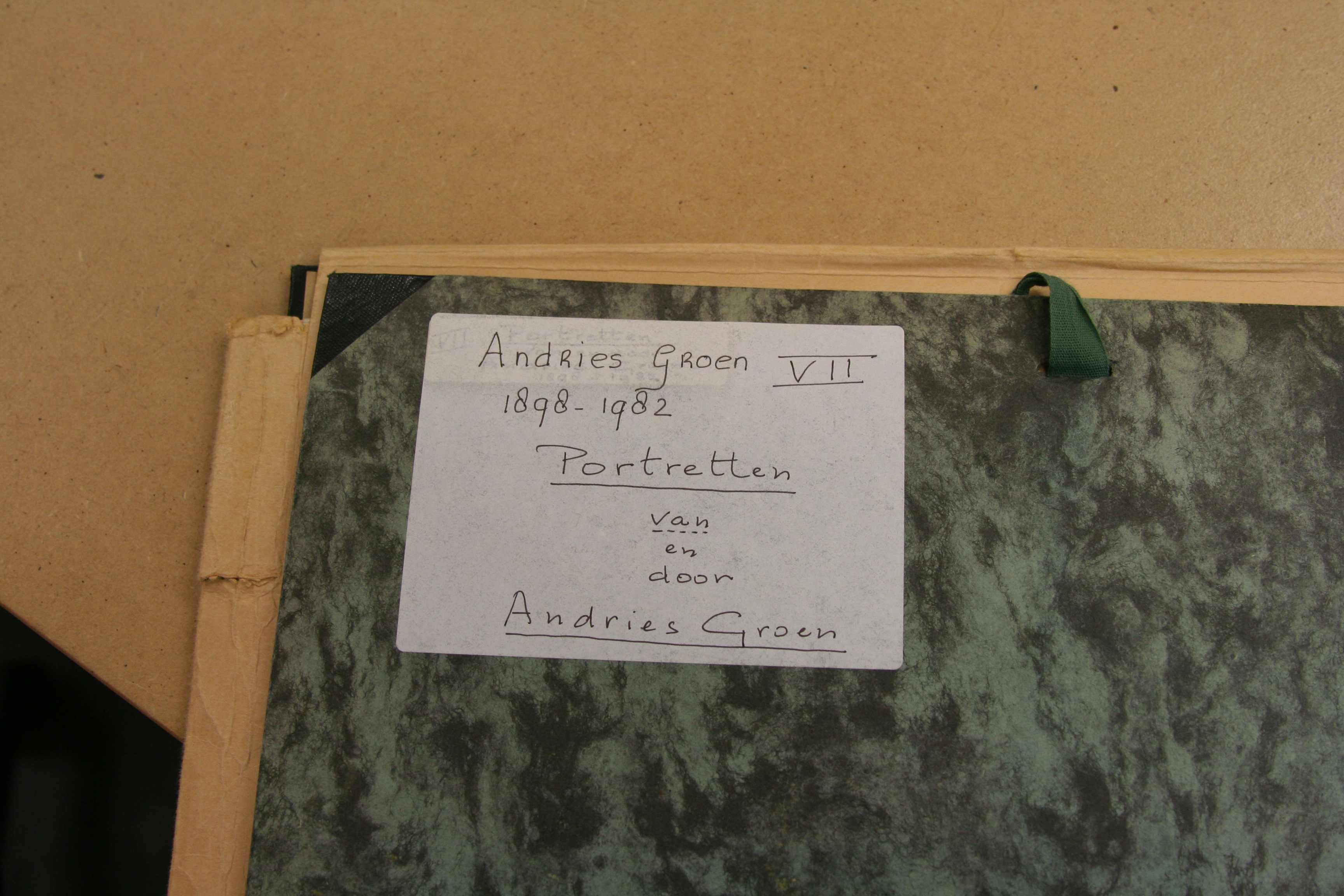 Map VII, Portretten van en door Andries Groen, 32 penseeltekeningen in kleur, in passe-partout.