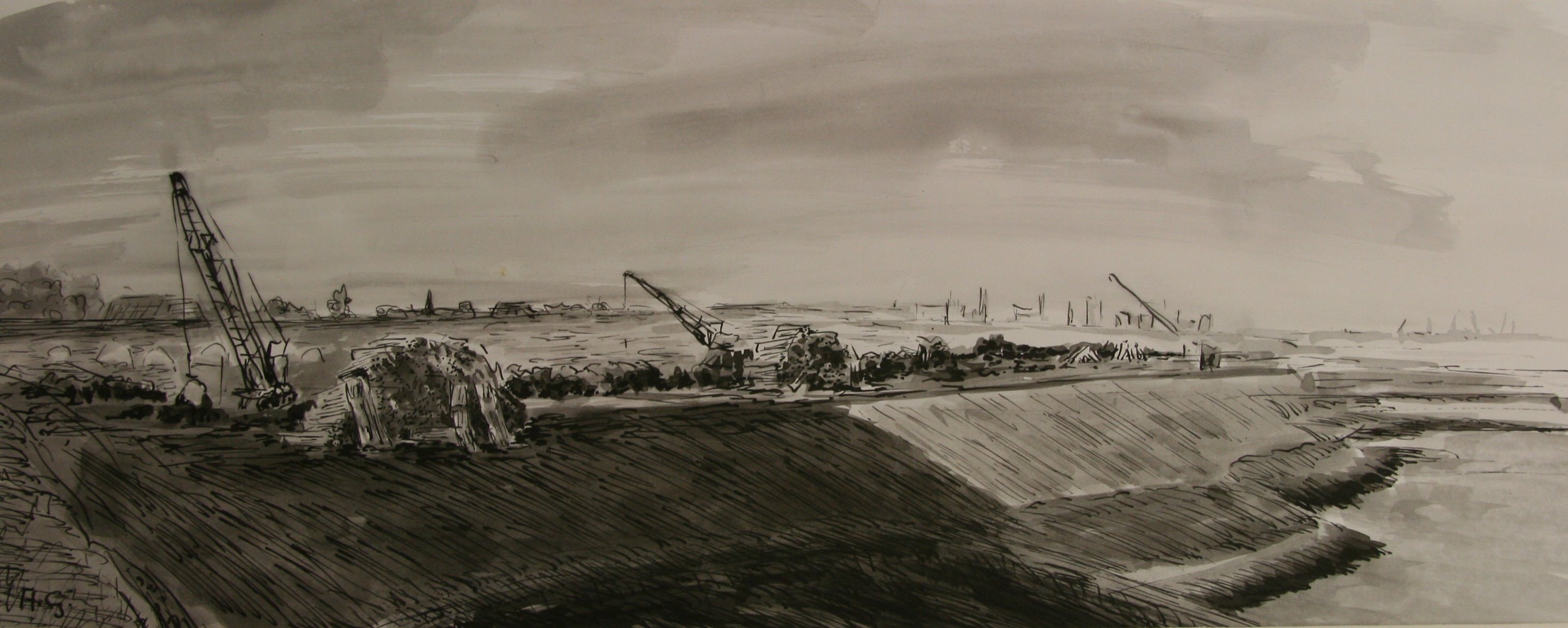 | opschrift | Achterkant: Dijkwerken bij Oterdum, A. Groen, 1963 |