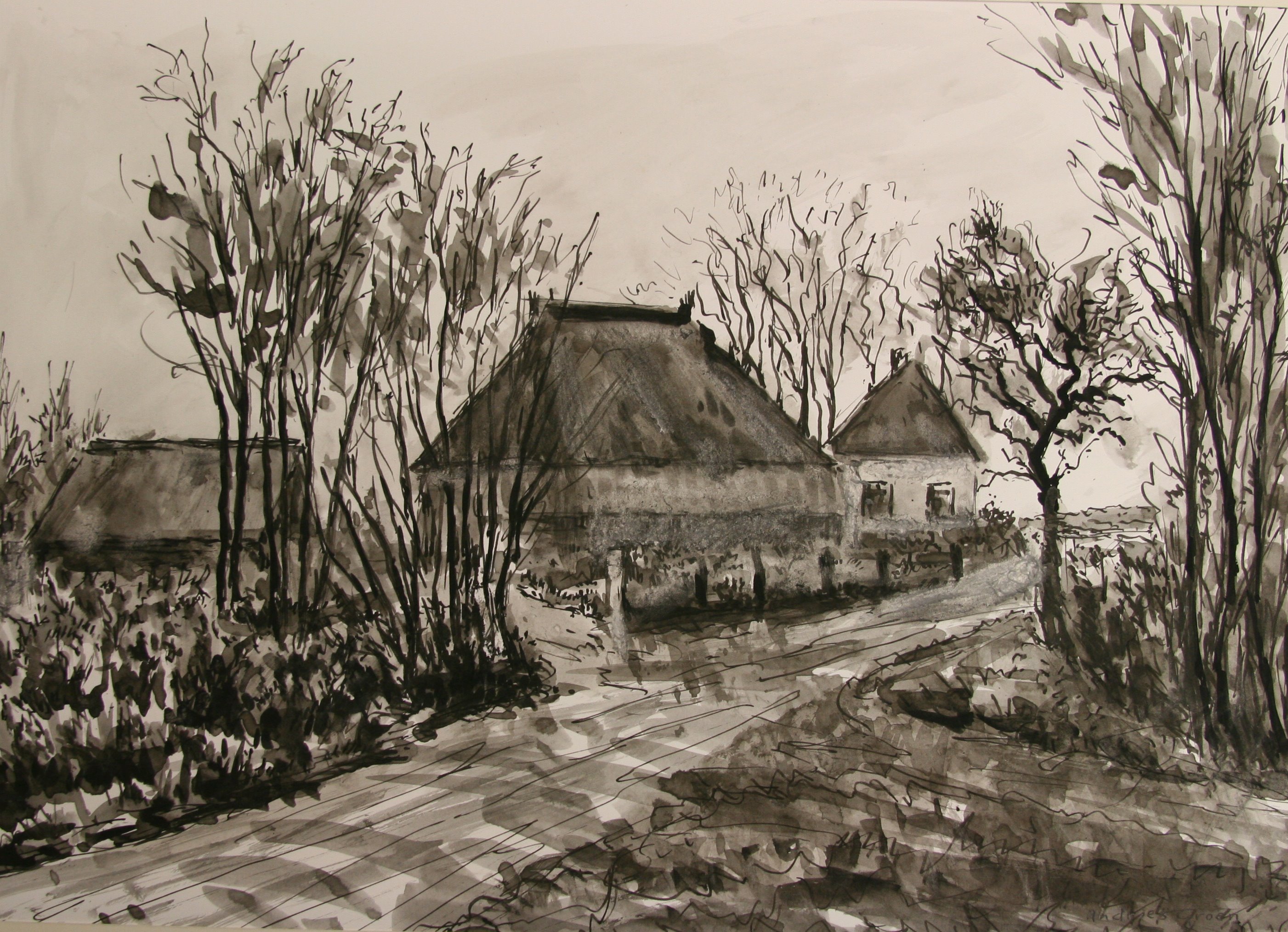 | techniek | gewassen inkt, pen |