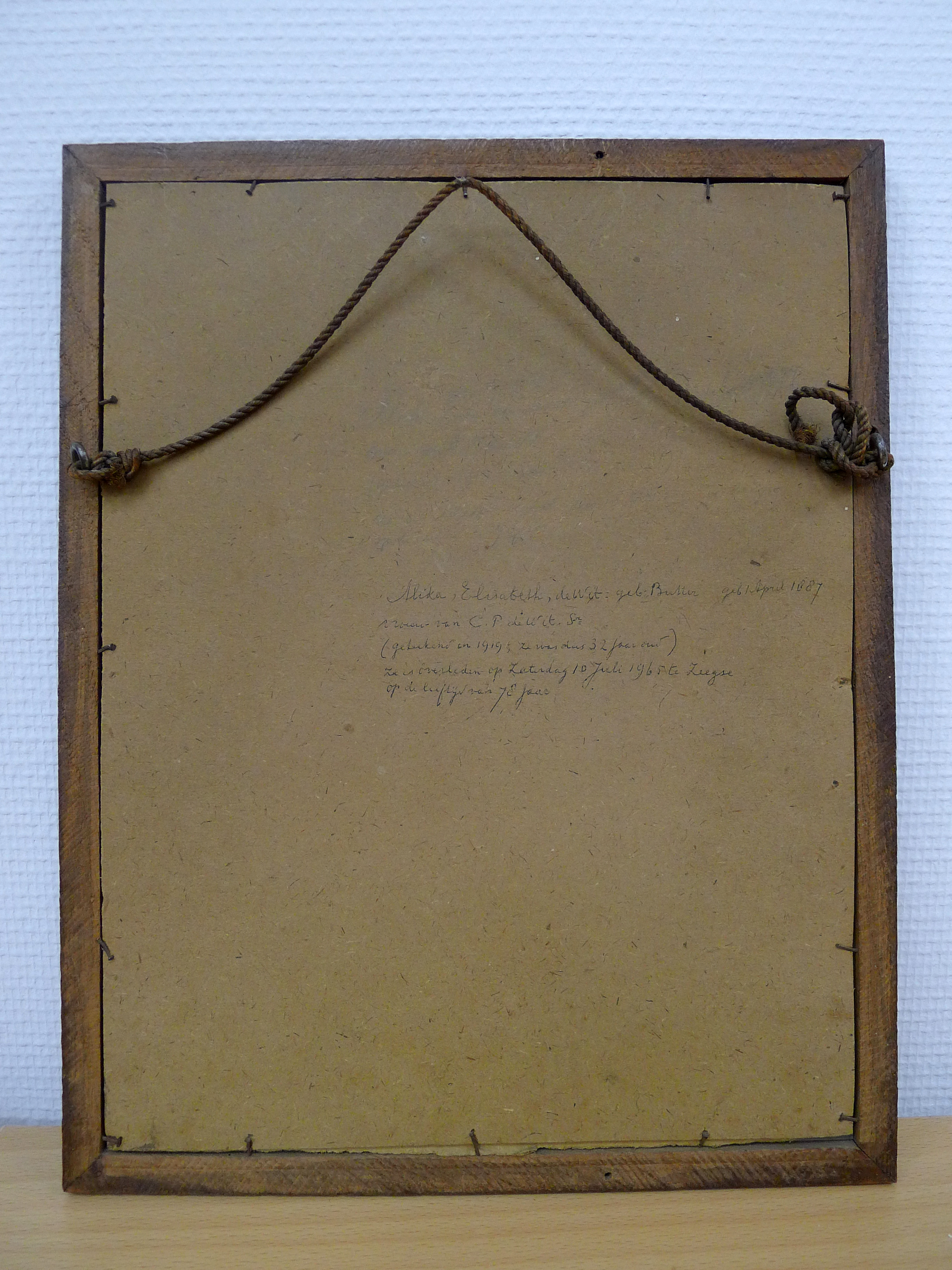 | geportretteerde | Alida Elizabeth Butter 1 april 1886 - 10 juli 1965 Ouders: Pieter Floris Butter en Alida Elizabeth Smit Gehuwd met: Cornelis Pieter de Wit op 5 augustus 1909 |