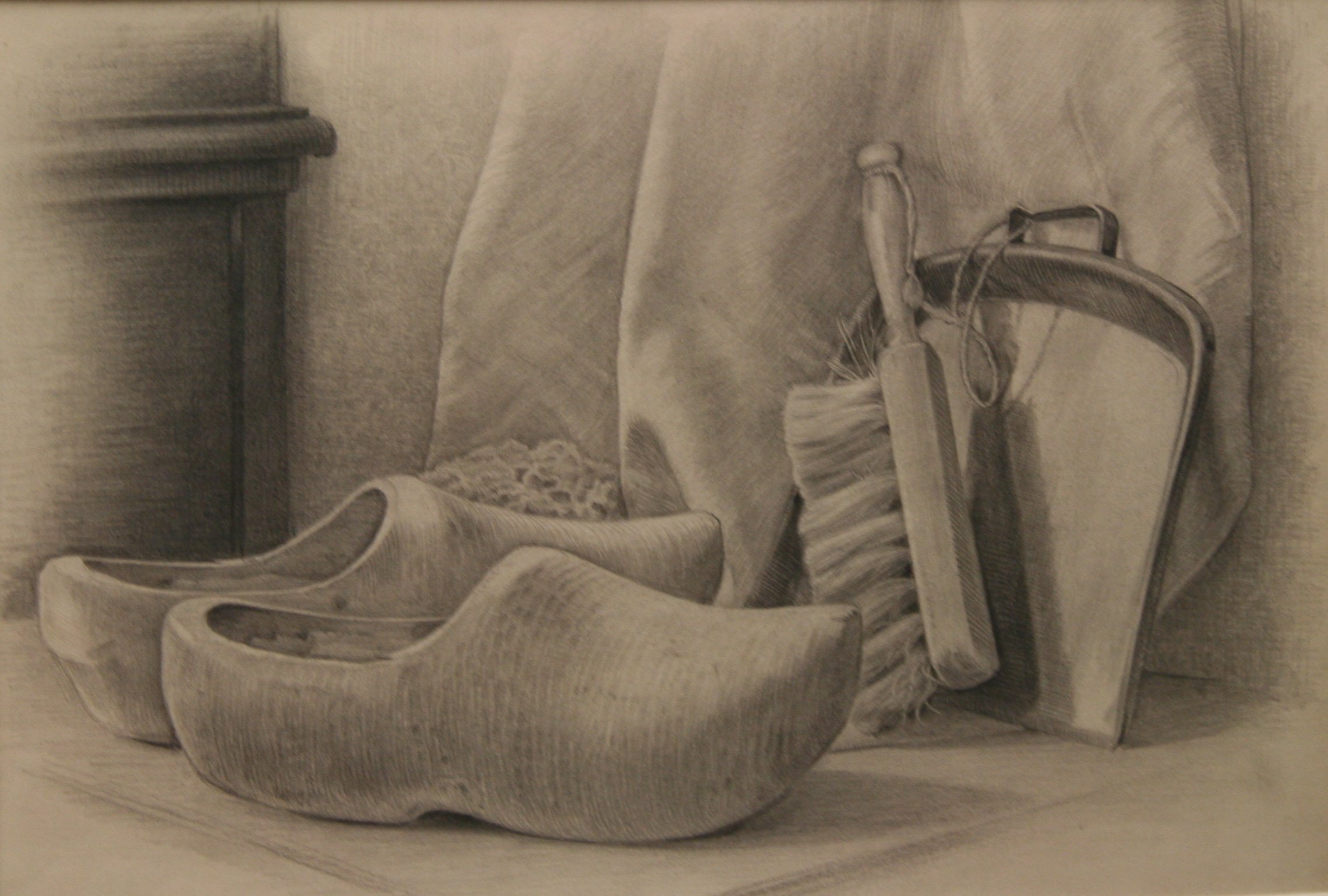 | opschrift | Achterkant: Berend Hoving (1901-1986), Stilleven met klompen, Potlood, 30,5 x 21 cm Indien u geen bestemming meer hebt voor dit werk dan stel ik het op prijs wanneer u het wilt toevoegen aan de collectie van Berend Hoving die wordt beheerd in het depot van de Stichting Behoud Beeldende Kunst Groningen. Greta Oostenbrug-Hoving (dochter van de kunstenaar) |
