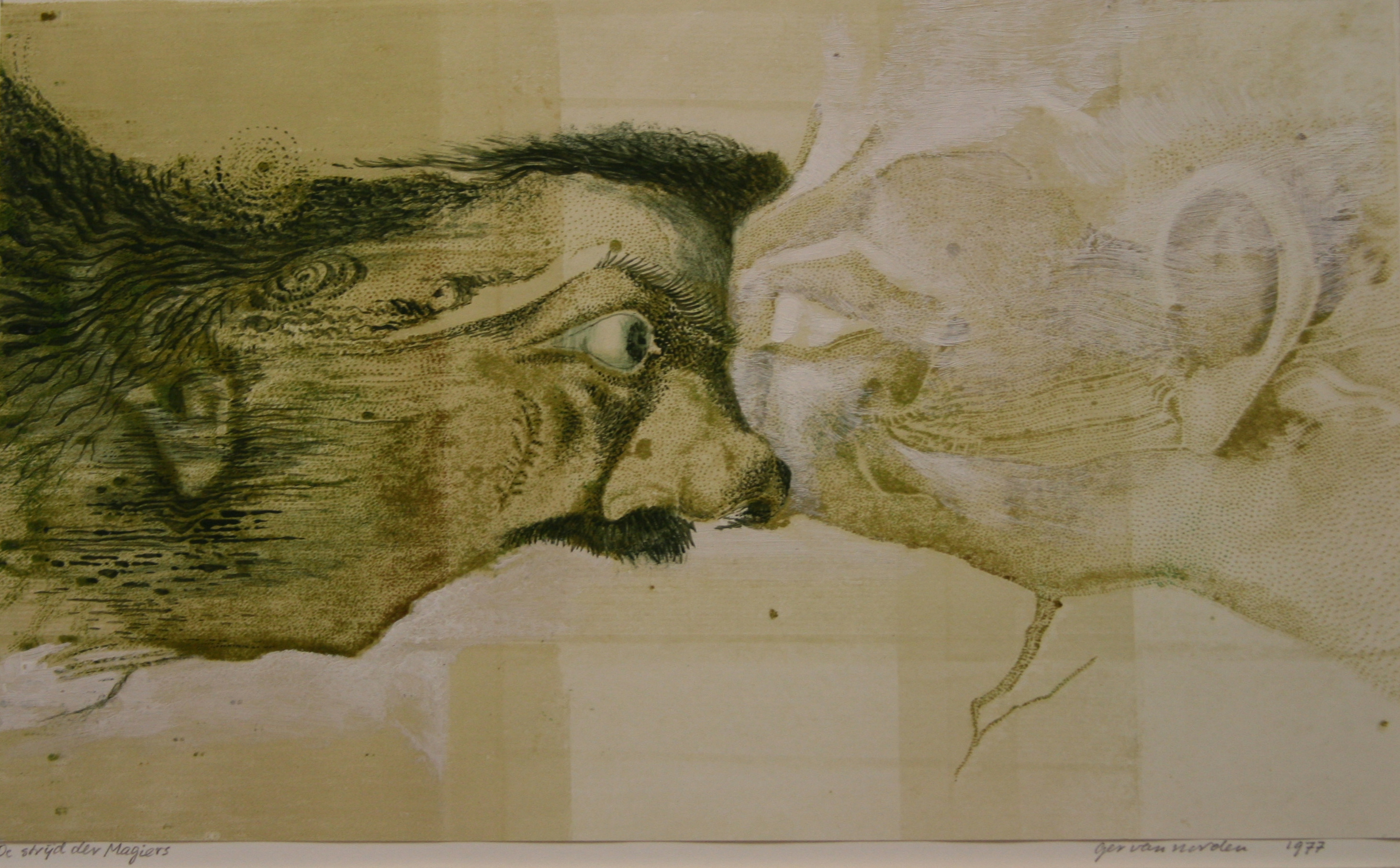 | opschrift | linksonder De strijd der Magiers, rechtsonder Ger van Norden 1977 |