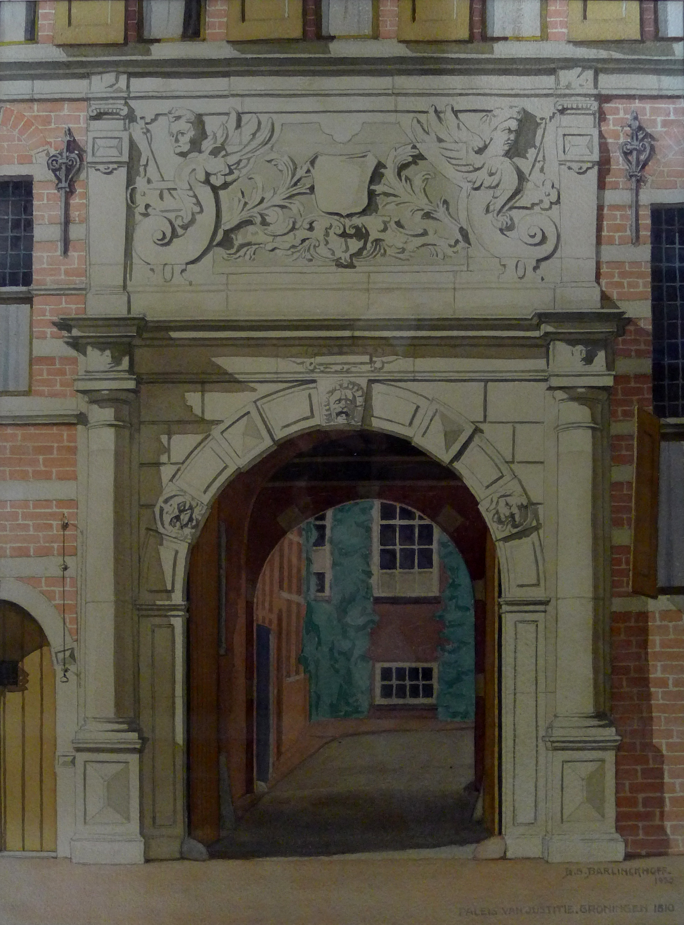 | opschrift | rechtsonder Paleis van Justitie, Groningen, 1610 |