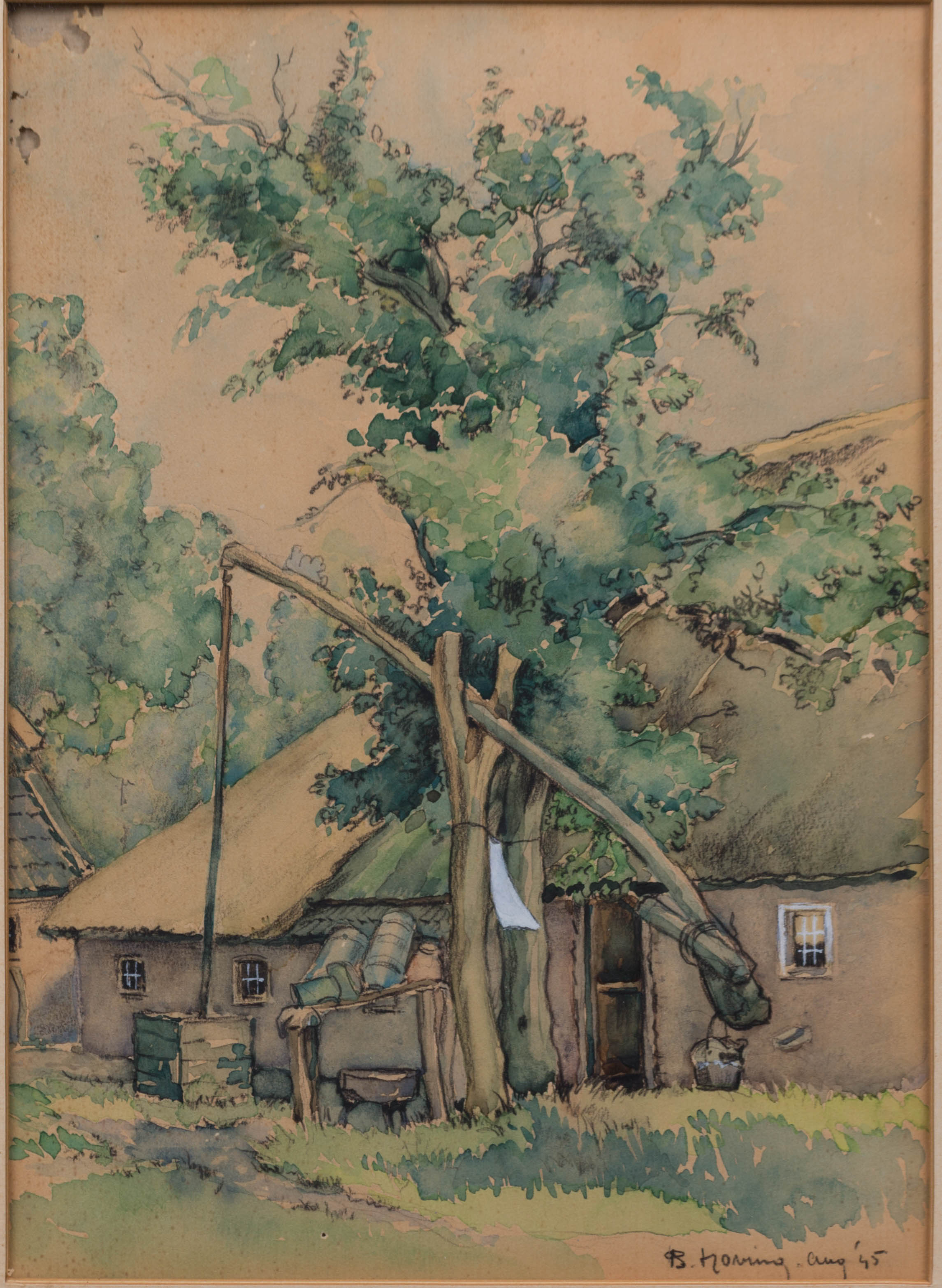 | opschrift | Achterkant: Berend Hoving (1901-1986), Zwengelput achter het huis, Aquarel, 20,5 x 28,5 cm, 1945 |