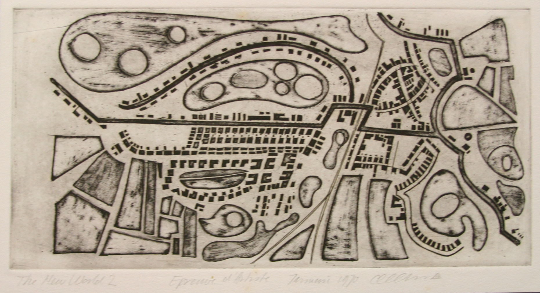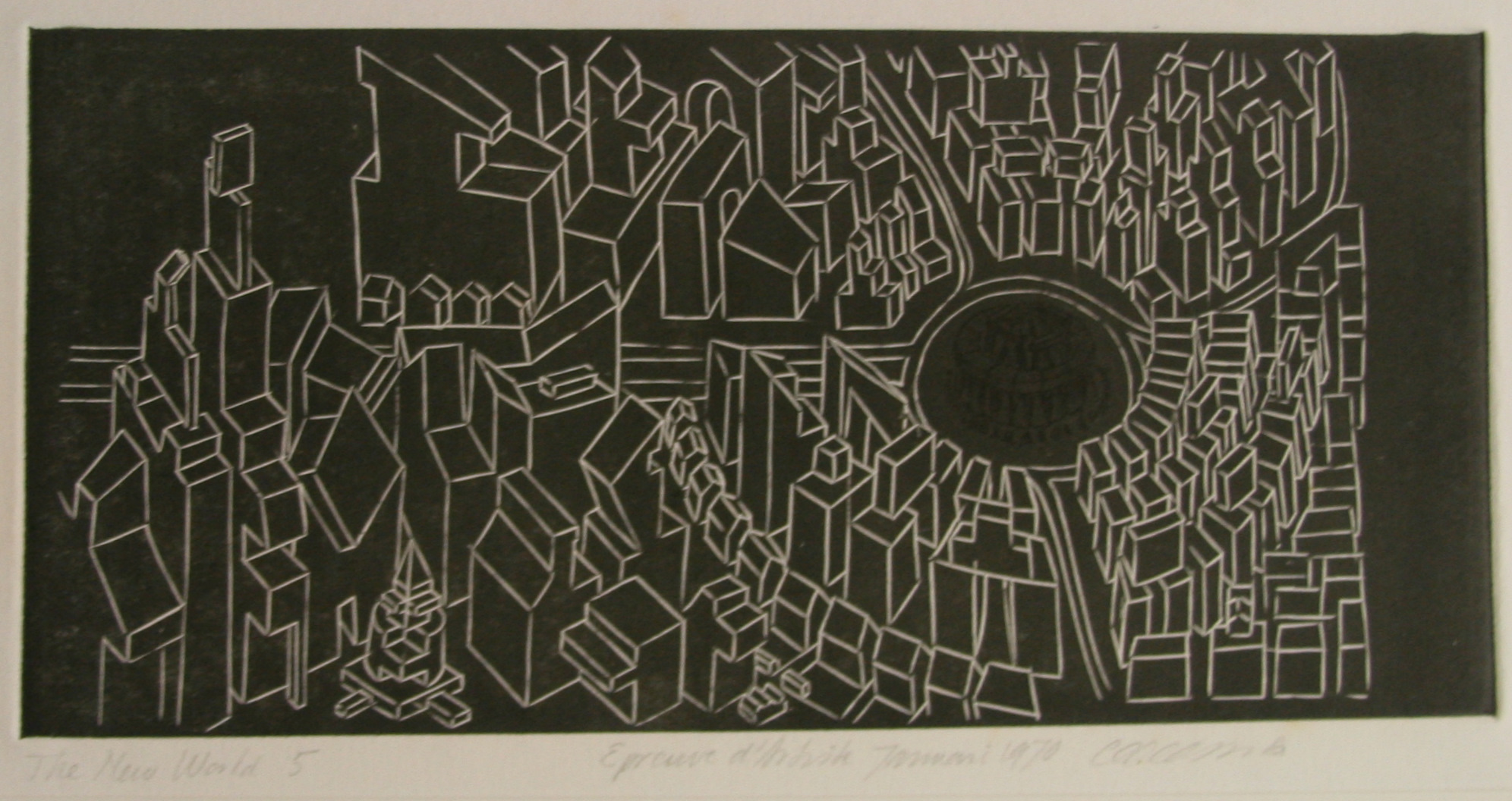 Map met 19 zwartwit, gekleurde litho's, olieverf op papier, collage, tekening, preeg, 5 niet gefotografeerd.