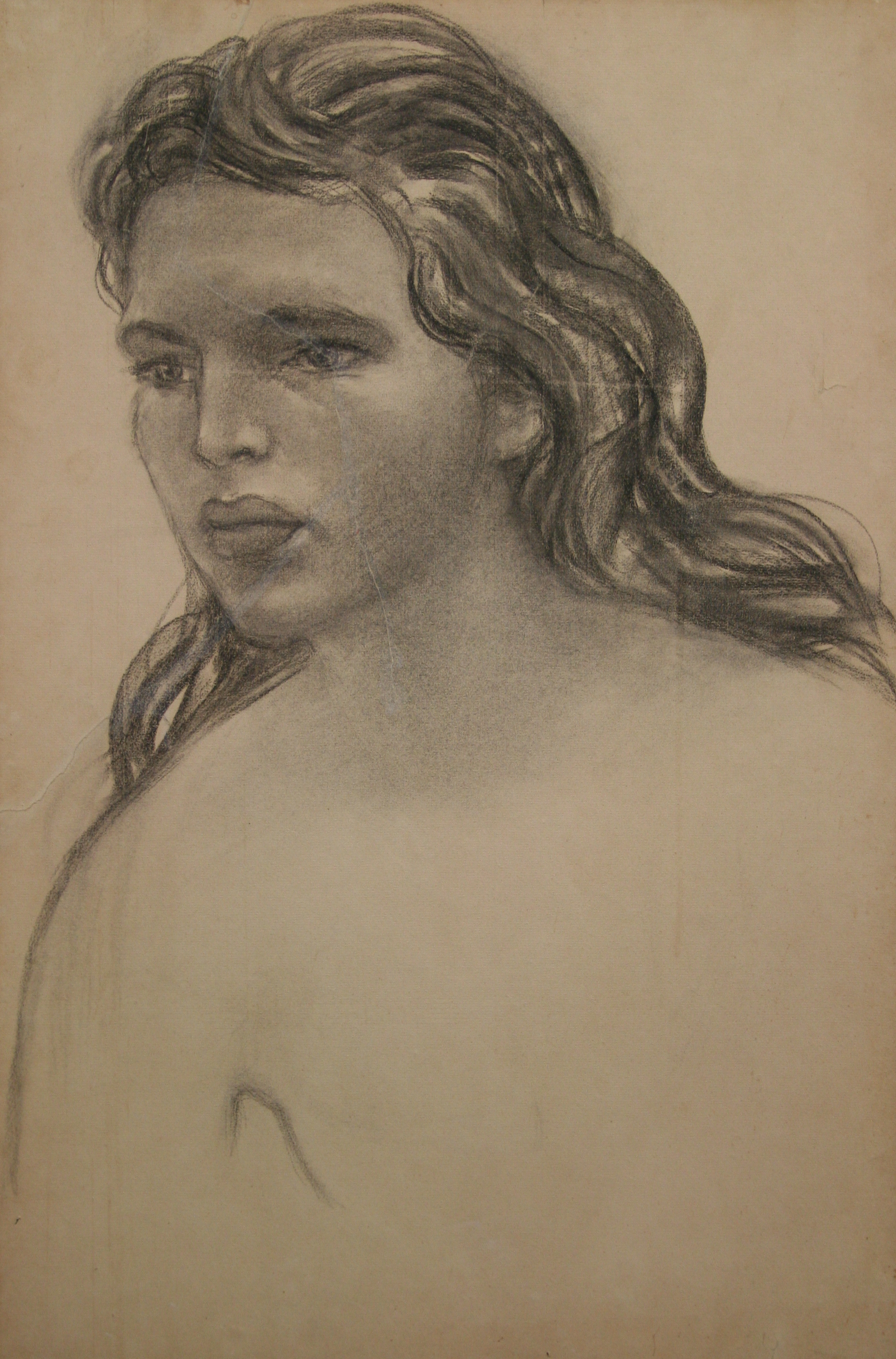 houtskool, geplakt op board |