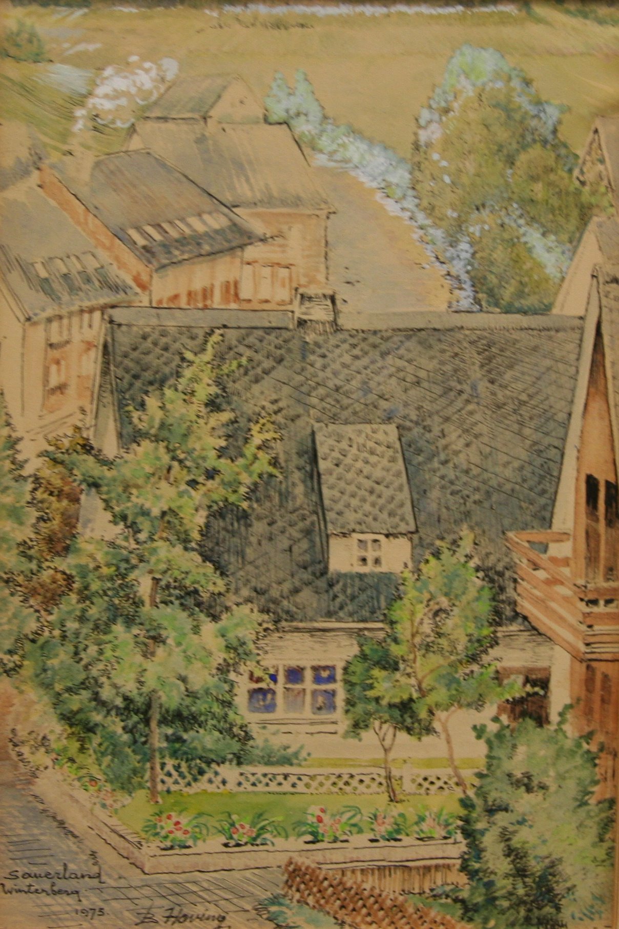 | opschrift | Linksonder Sauerland, Winterberg, 1975 Achterkant: Berend Hoving (1901-1986), Sauerland, Aquarel + pen, 15 x 22,5 cm |