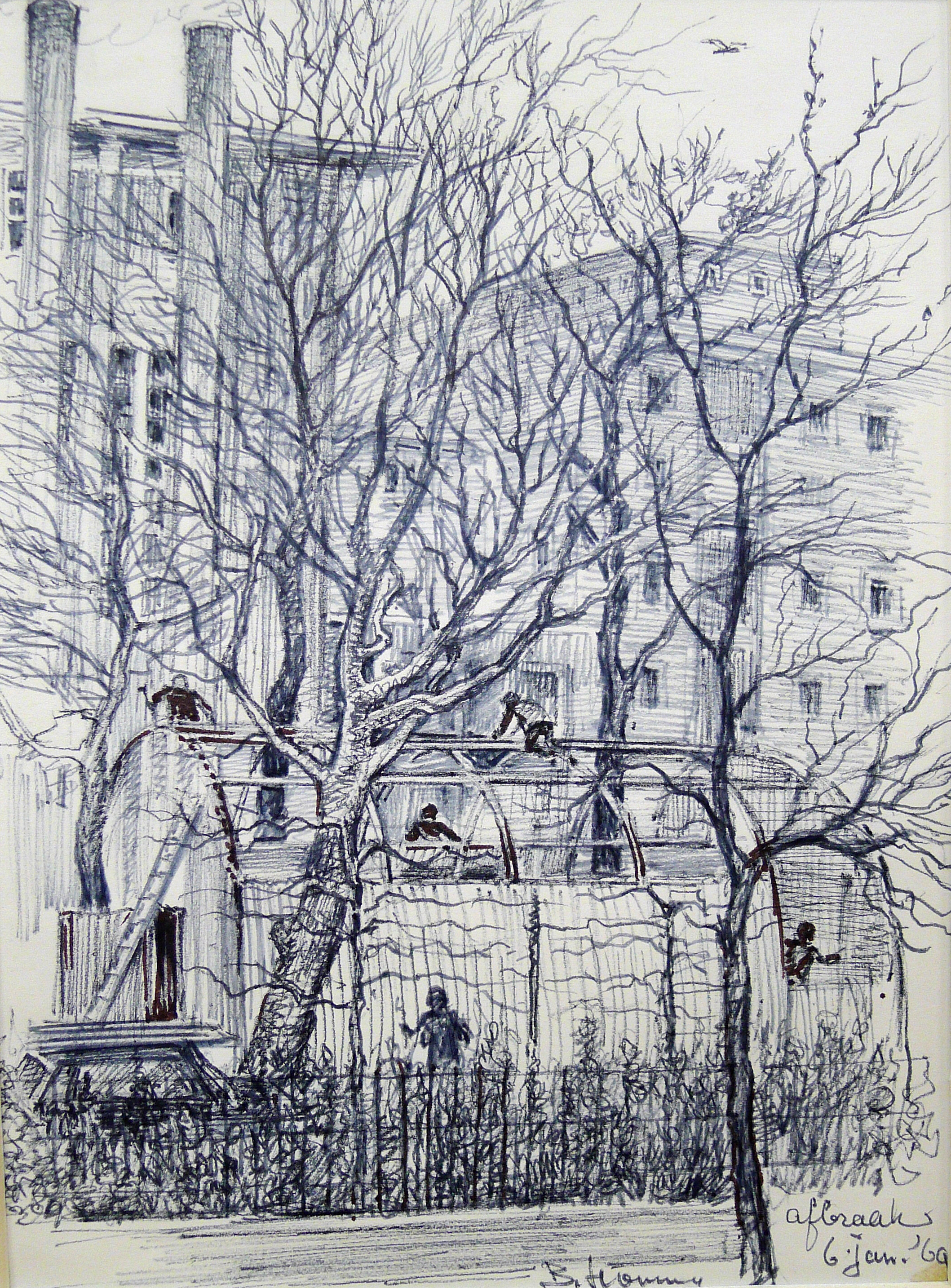 | opschrift | rechtsonder afbraak achterkant: Berend Hoving (1901-1986), Oostersingel Groningen, pen, 14,5 x 20 cm, 1969 |