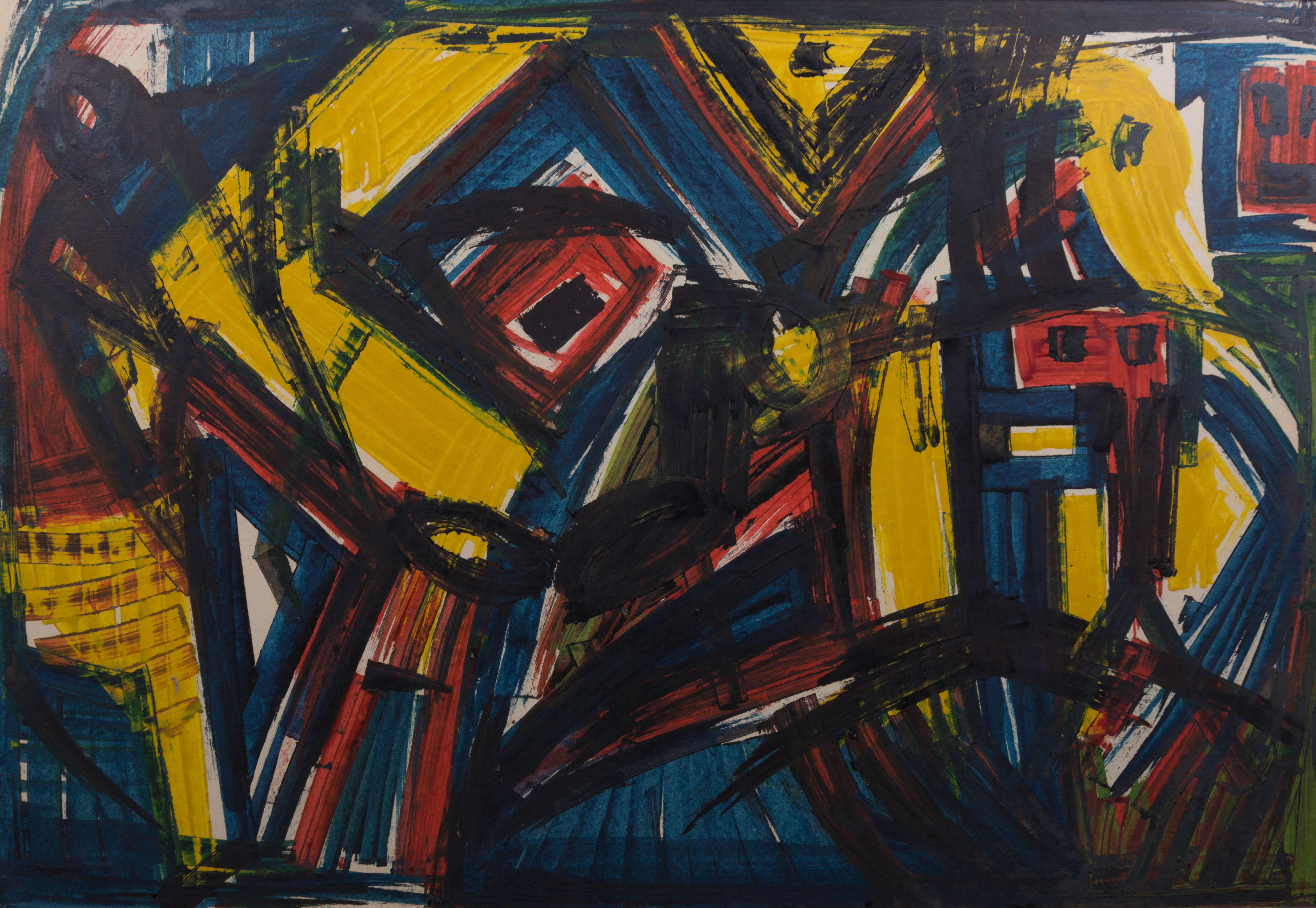 | techniek | drukinkt op papier, plakkaatverf op papier |