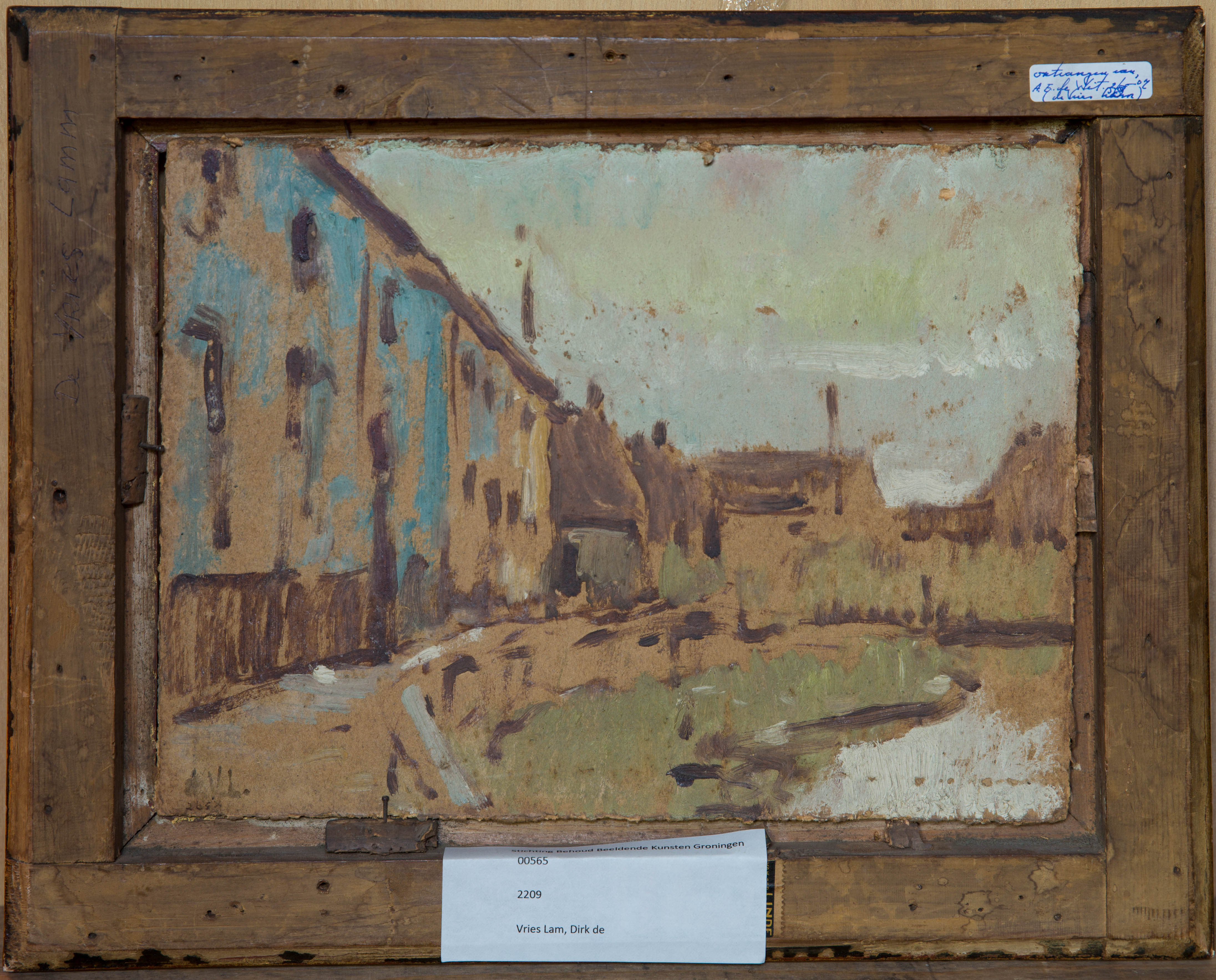 Verso: olieverfschets van dorpsgezicht.