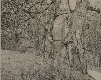 | opschrift | linksonder: B.R. Homan '75, rechtsonder: l. ets 43/100, achterkant: Ets 104 oude Tamme Kastanjes, 40.0 x 50.0 (cm) |