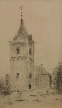 De lijnen zijn niet duidelijk aangebracht. De contouren van de kerk zijn daardoor minder sterk. Er zijn geen schaduwpartijen.